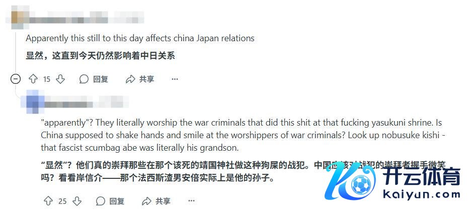 “别说什么‘历史上的旧怨直到今天还在影响中日关系’。日本东谈主年年拜靖国神社,把那群战犯当神相似供着。你还能指望什么?难谈让中国东谈主跟战犯的信徒捏手言欢吗?去查查岸信介就知谈了,阿谁法西斯渣滓,安倍晋三就是他亲外孙。你如若真的知谈日本在中国都干了些什么,你会以为他们只挨两颗核弹都算轻的了。”