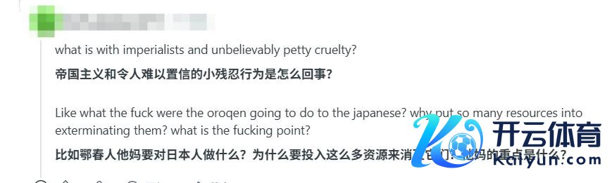 “我不睬解为什么日本帝国主义的狂躁会到如斯令东谈主发指的地步?鄂伦春对日本东谈主怎么了?他妈的为什么要针对这样一个弱小的族群?为什么要参预这样多资源死灭他们?日本东谈主他妈的到底是图个啥?”