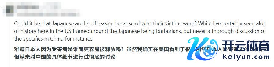 “会不会因为受害者是中国东谈主,是以寰球就轻轻放过了?在好意思国,咱们天天说日本东谈主‘骄气’,可简直没东谈主细讲他们在中国到底作念了什么。”