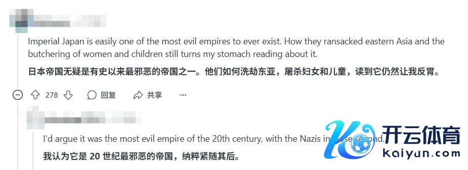 “日本帝国富裕是东谈主类历史上最阴毒的帝国之一。他们褫夺了通盘东亚,屠杀了不计其数的妇男儿童。频繁读到那段历史,我都会以为反胃想吐。”
