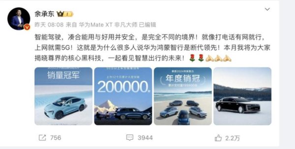 一番炮轰之后,华为车BU董事长余承东成为了第一位站出走动怼,更正智驾价值的车圈大佬: