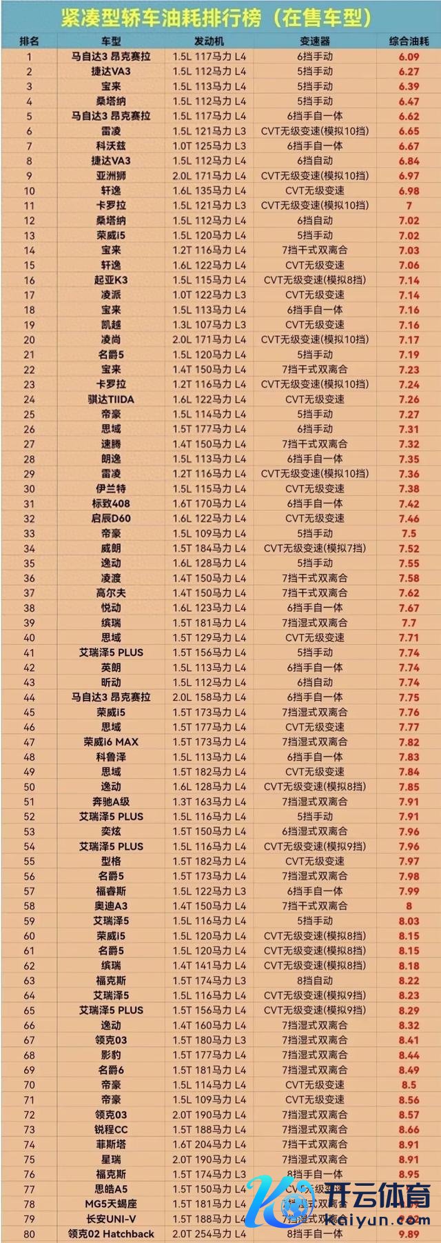 具体从榜单来看,不同车型之间的油耗相反额外较着。马自达3昂克赛拉手动版块玄虚油耗仅为6.09升/百公里,成为油耗最低的车型,然则同等排量的自动挡则油耗要跳跃0.6个油。捷达VA3、宝来、桑塔纳等车型油耗推崇皆可以,玄虚油耗低于6.5;轩逸、K3、伊兰特、卡罗拉、雷凌等市集热点车型,油耗推崇也皆可圈可点。