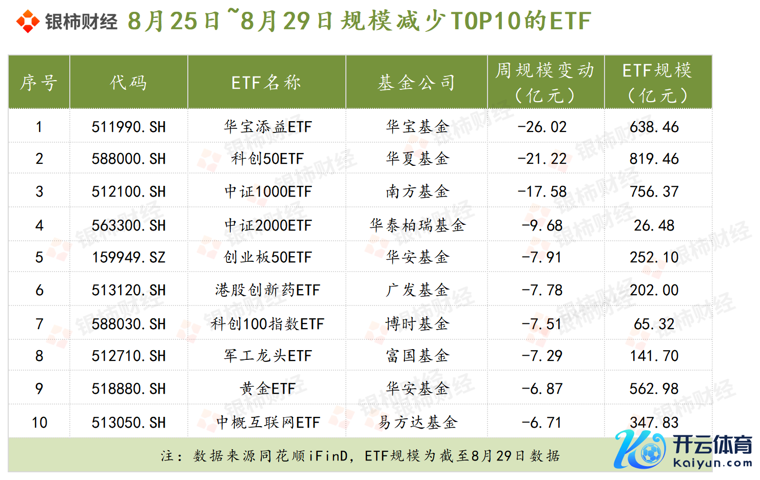 多只热点的ETF在上周行情触动时范围出现缩水,如追踪小盘股的中证1000ETF、中证2000ETF和军工主题的ETF。此外,在双创指数节节攀升时,资金止盈趋势赫然,部分追踪上证科创50指数、创业板50指数的ETF产物范围出现赫然缩水。