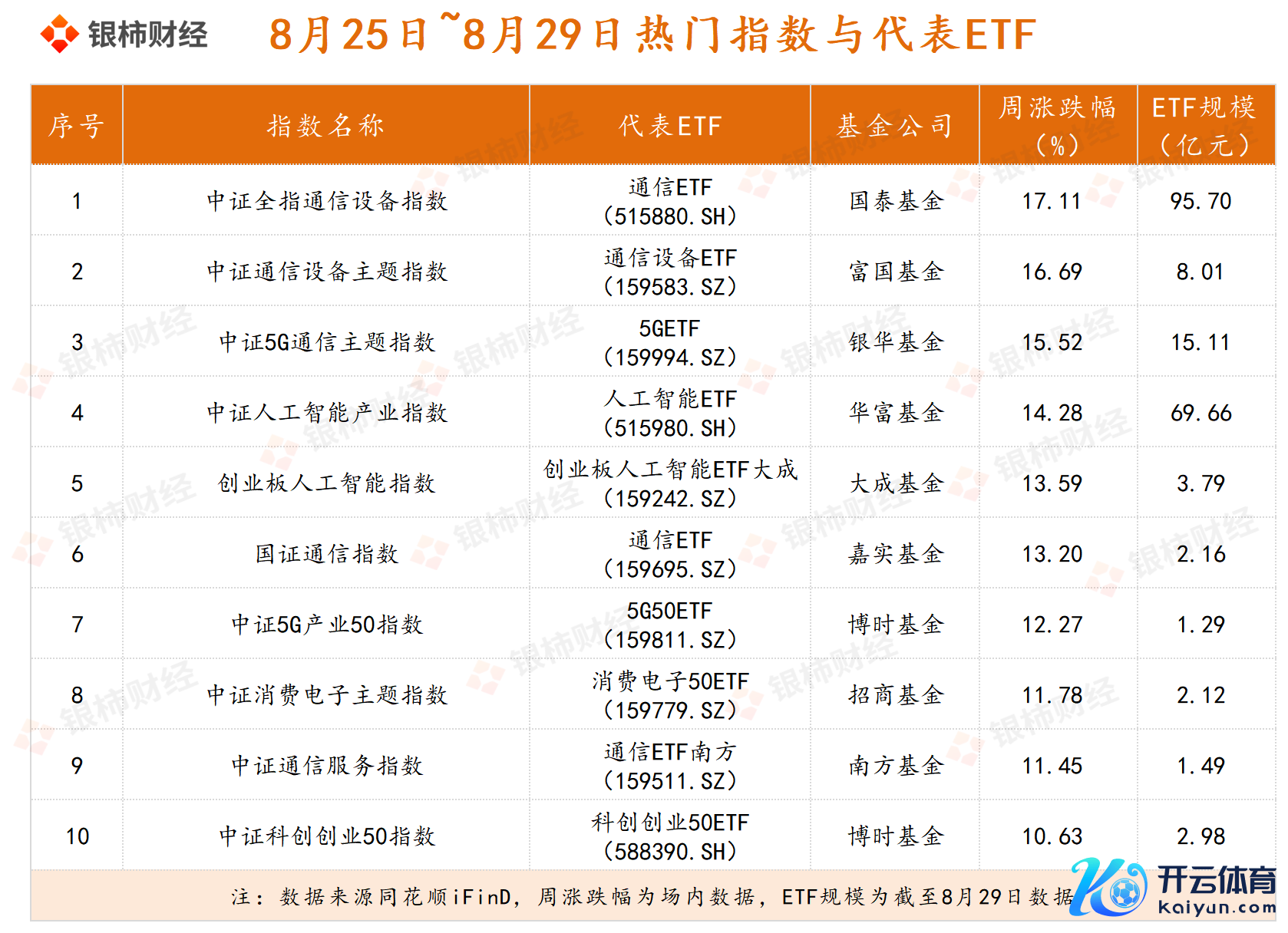 从单只ETF阐述来看,通讯、AI两大主题的ETF上周醒目市集,多只产物涨幅超15%。其中国泰基金旗下的通讯ETF上周涨幅达17.11%。拉永劫辰来看,铁心8月29日,该ETF年内涨幅达87.17%,位居ETF涨幅榜第13名。