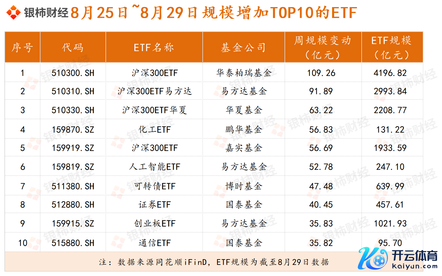 上周,华泰柏瑞基金旗下的沪深300ETF单周范围增多109.26亿元,这已是该产物连气儿两周单周范围增多超百亿元。此外,易方达基金旗下的沪深300ETF范围也速即攀升,铁心8月29日范围已达2993.84亿元,离3000亿大关只差“临门一脚”。