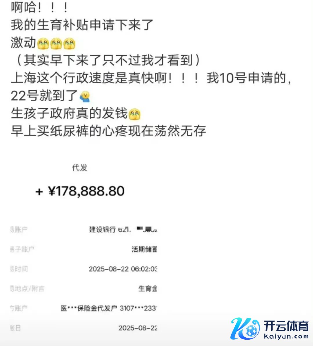 昨天(9月2日)体育游戏app平台 一条对于生养补贴的帖子 登上了微博热搜榜高位 发帖网友示意 我方8月10日提交了 上海市生养补贴的肯求 8月22日就到账了 金额多达17.8888万元 她欷歔“上海这个行政速率是真快啊!” 生孩子政府确切发钱, 早上买纸尿裤的疼爱当今化为乌有 图片开端:外交媒体 该话题冲上微博热搜后 网友们纷纷示意珍视 有网友凭据上海生养津贴的打算公式 (上年度单元月平均工资 / 30天 × 产假天数, 一孩可休158天,二孩再加15天) 推断该网友地点单元 月平均工资在三