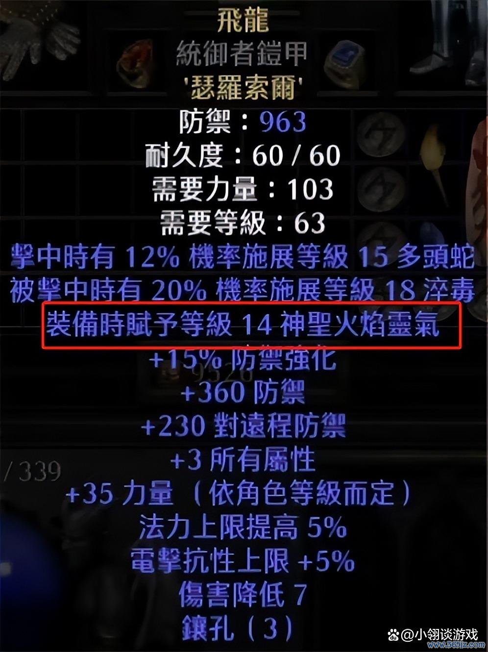 所谓三火,等于双飞龙+正义之手的搭配,三件装备皆提供圣火光环(火焰灵气),而且有减火炕的服从。