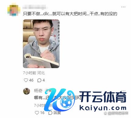 杨奇看到这话也没隐私,平直说 “哪有... 还在熬大夜呢”。这三个字一下子让玩家定心 —— 团队没闲着,还在赶工。斡旋之前他说的 “DLC 不草草端上来”,能看出来团队是念念保证质料,仅仅玩家等得着实心急。<